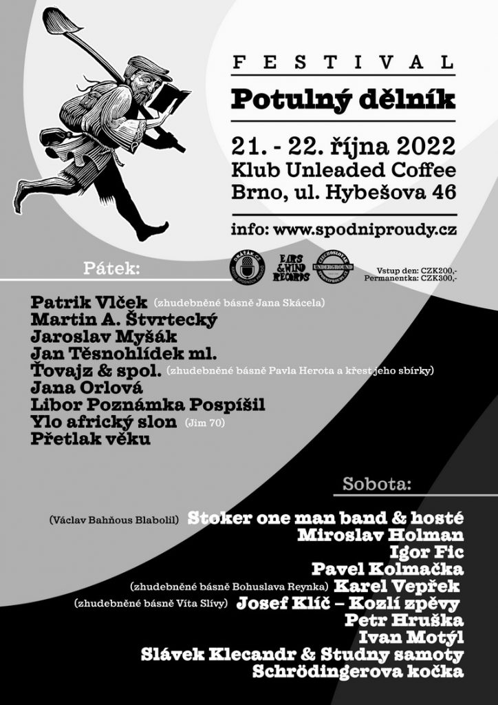 Sobota: Stoker One Man Band • Miroslav Holman • Petr Hruška • Ivan Motýl • Igor Fic • Pavel Kolmačka • Karel Vepřek • Josef Klíč • Slávek Klecandr & Studny samoty • Schrödingerova kočka